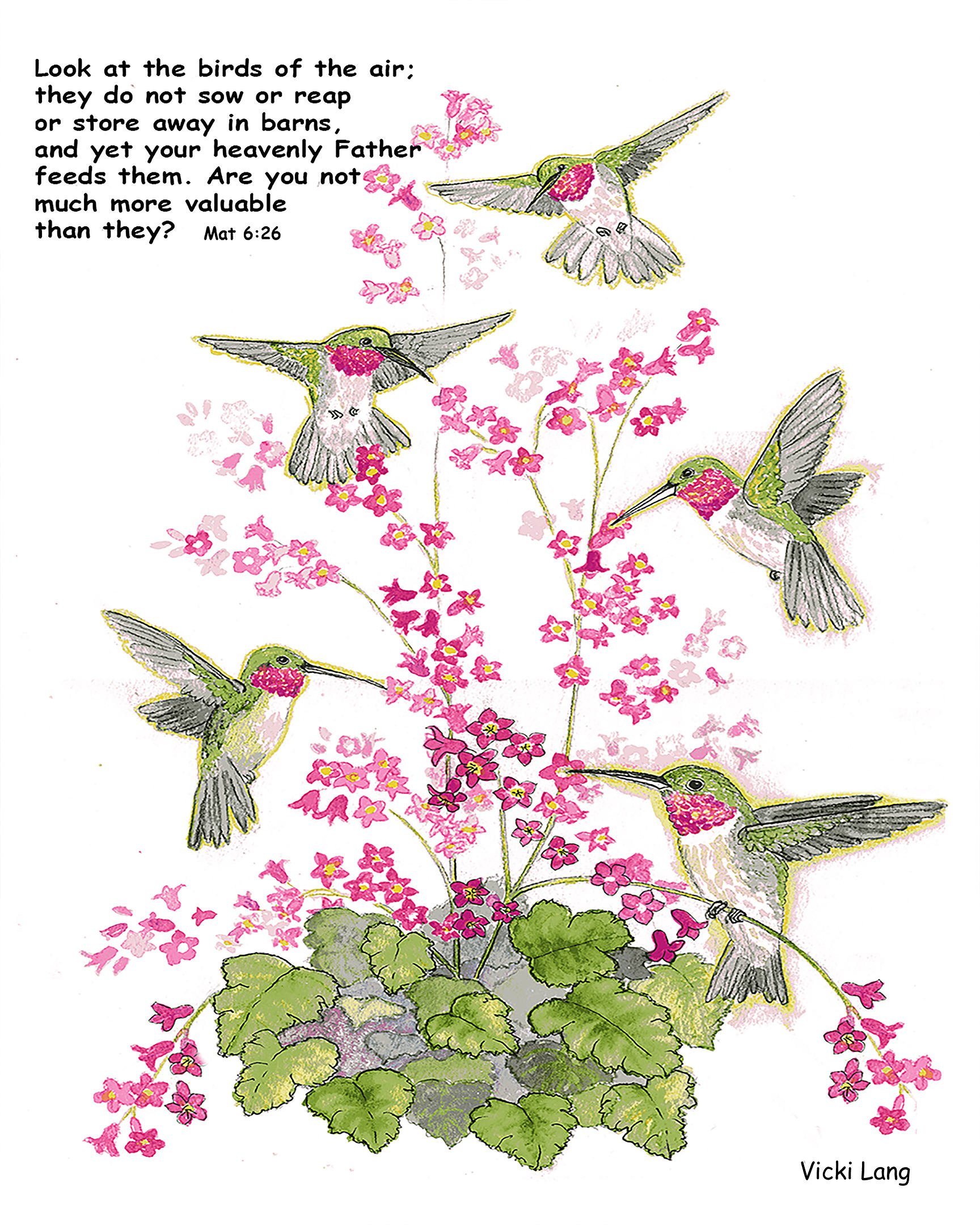 Tags: Birds, Christian Verse, Flowers, Green, Pink, Unframed Vertical Prints, Vertical, White.