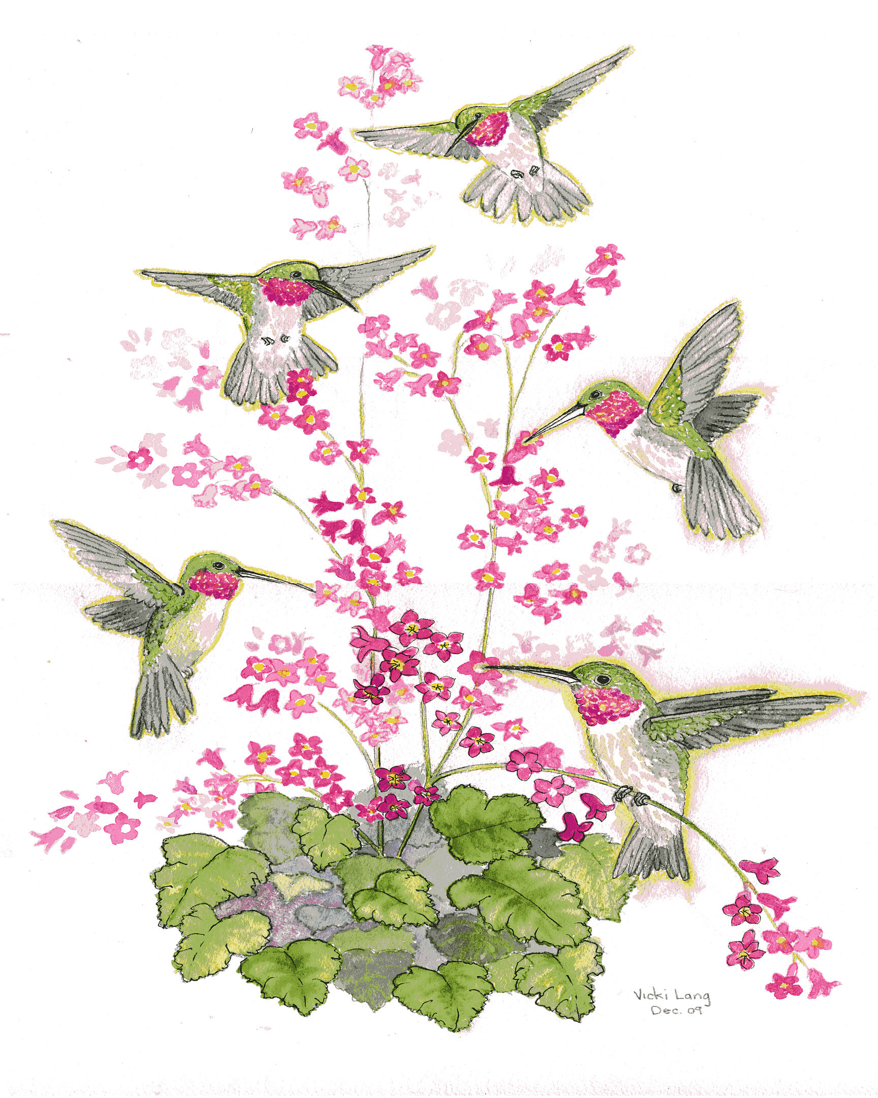 Hummingbirds with Coral Bells